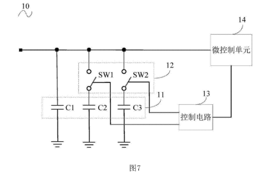 3.啟動電路的控制電路包括第一電阻、場效應管和第一二極管,場效應管的柵極連接第一電阻的一端,場效應管的漏極連接第一二極管的正極和開關件,場效應管的源極接地,第--電阻的另一端連接微控制單元,第一二極管的負極連接預定供電電壓和開關件。開關件包括繼電器或NMOS管。啟動電路包括與開關器件連接的延時電路用于在開關電源上電過程中按照設定時序驅動所開關件的通斷狀態調節電容電路的電容值。