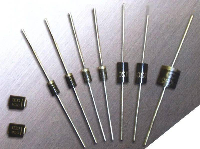 3. 肖特基二極管(SBD)----全稱為肖特基勢壘二極管,它屬于低電壓、低功耗、大電流、超高速半導體功率器件,其反向恢復時間可小到幾納秒,正向導通壓降僅為0.4V左右,整流電流可達幾十至幾百安培。特別適合做開關電源充電器低壓輸出電路中的整流二極管、續流二極管。