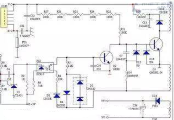 1、先用電阻測(cè)量法測(cè)量開關(guān)管Q1有無(wú)擊穿短路現(xiàn)象,電流取樣電阻R4有無(wú)開路。電路易損壞元件為開關(guān)管,當(dāng)其損壞后,R4因受沖擊而阻值變大或斷路。Q1的G極串聯(lián)電阻、振蕩芯片PC1往往受強(qiáng)電沖擊而損壞,須同時(shí)更換;檢查負(fù)載回路有無(wú)短路現(xiàn)象,排除。