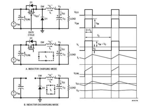 其間TON是開關電源周期TS內的導通時間距離。假定TON/TS之比界說為占空比D,則輸出電壓VO為: