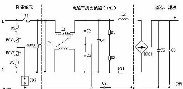 開關電源的首要電路是由輸入電磁攪擾濾波器(EMI)、整流濾波電路、功率變換電路、PWM操控器電路、輸出整流濾波電路組成。輔助電路有輸入過欠壓維護電路、輸出過欠壓維護電路、輸出過流維護電路、輸出短路維護電路等組成的。