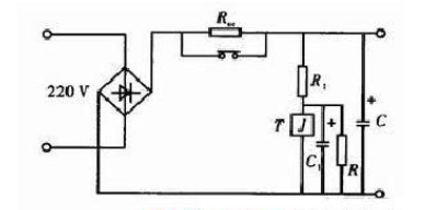 將功率電子開關(可所以MOSFET或SCR)與控制電路封裝在一個相對很小的模塊(如400W以下為25mm×20mm×11mm)中,引出3~4個引腳,外接電路如圖6(a)所示。整流器上電后開端一段時間,外接限流電阻仰制上電浪涌,上電浪涌完畢后,模塊導通將限流電阻短路,這樣的上電進程的輸入電流波形如圖4(b)所示。很顯然上電浪涌峰值被有用仰制,這種上電浪涌仰制模塊需外接一限流電阻,用起來很不方便,如何將外接電阻省掉將是電源設計者所希望的。