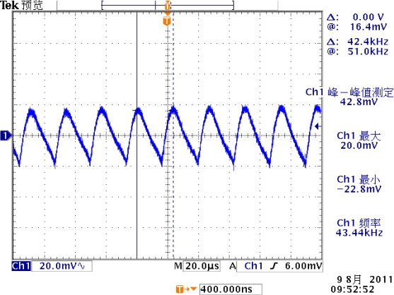 開關電源都需對輸出電壓進行閉環控制,調節器參數設計的不適當也會引起紋波。當輸出端波動時通過反饋網絡進入調節器回路,可能導致調節器的自激振蕩,引起附加紋波。此紋波電壓一般沒有固定的頻率。