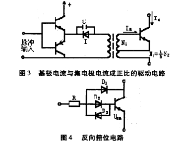 為避免因基極電流太大而增加開關管的存儲時間,可采用圖4的反向箱位電路。這種電路,當基極電流上升到使開關管的飽和壓降低于Uw時,二極管D,導通,阻止基極電流的進一步增加,可有效地避免過驅動。