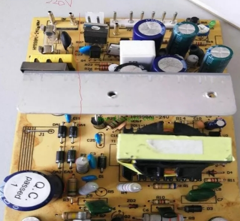開關電源實踐上是由交流、直流、交流、直流改換的過程,是將220V交流電通過整流濾波后變成300V直流電,再通過開關變壓器的儲能電感、開關管將直流電壓改換成多種電壓等級的交流電壓,再整流濾波后變成直流電壓輸出驅動負載正常作業。下圖是一個開關電源,輸出5V、12V、24V。