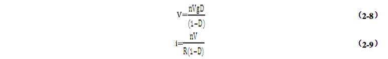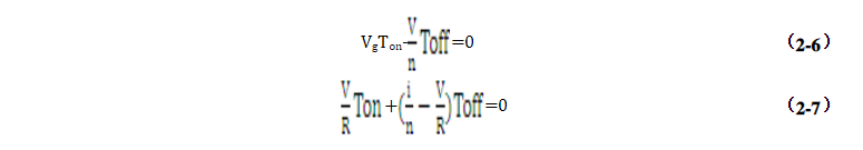 現(xiàn)在來(lái)分析它的工作原理:?當(dāng)Q導(dǎo)通時(shí),二極管截止,根據(jù)電路知識(shí)可知此時(shí)VL=Vg,ic=-V/R;當(dāng)Q截止時(shí),二極管D導(dǎo)通,VL=-V/n,ic=i/n-V/R。由伏秒平衡和電容充放電平衡可得: