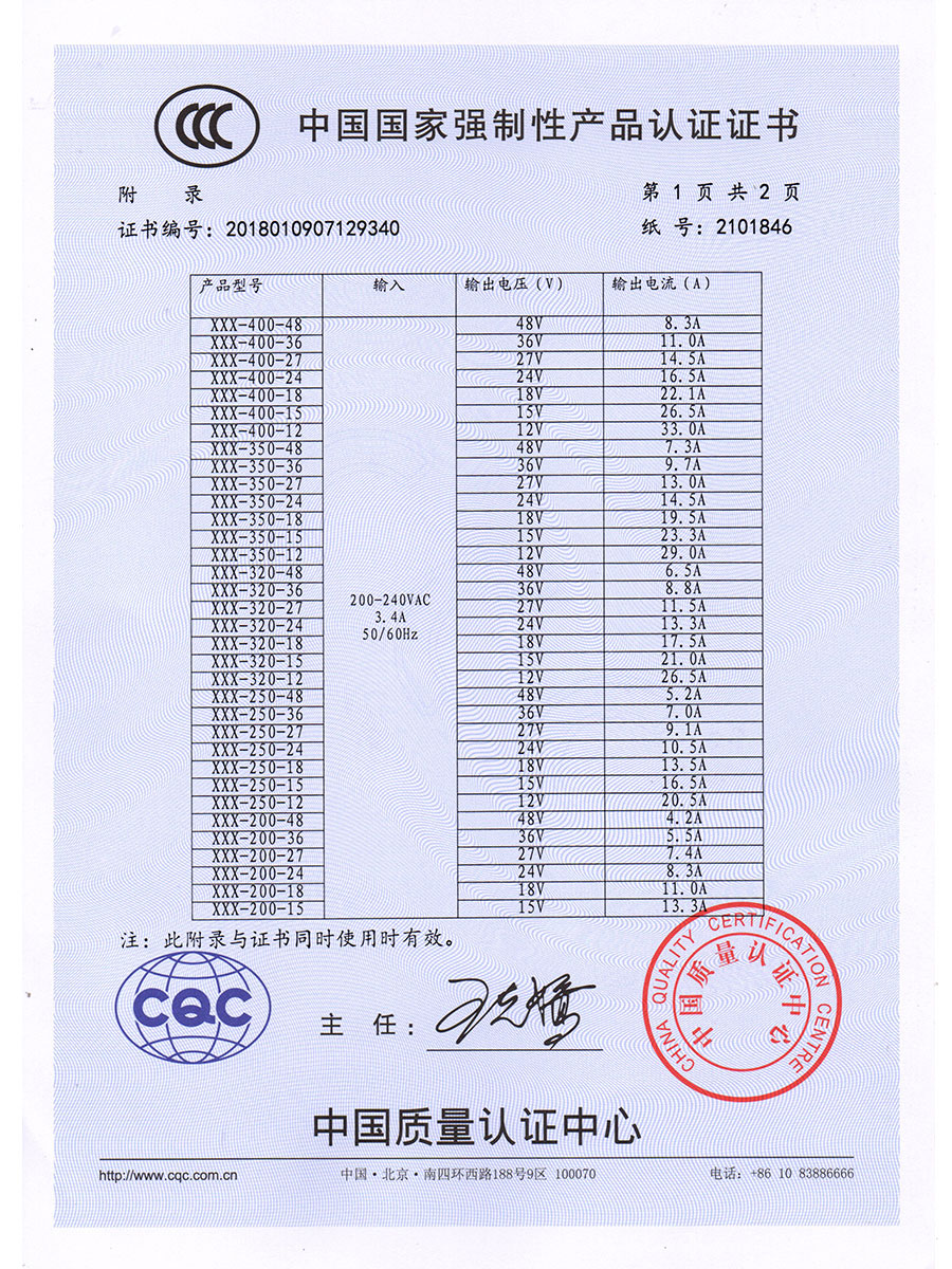 中國國家強制性產品認證證書
