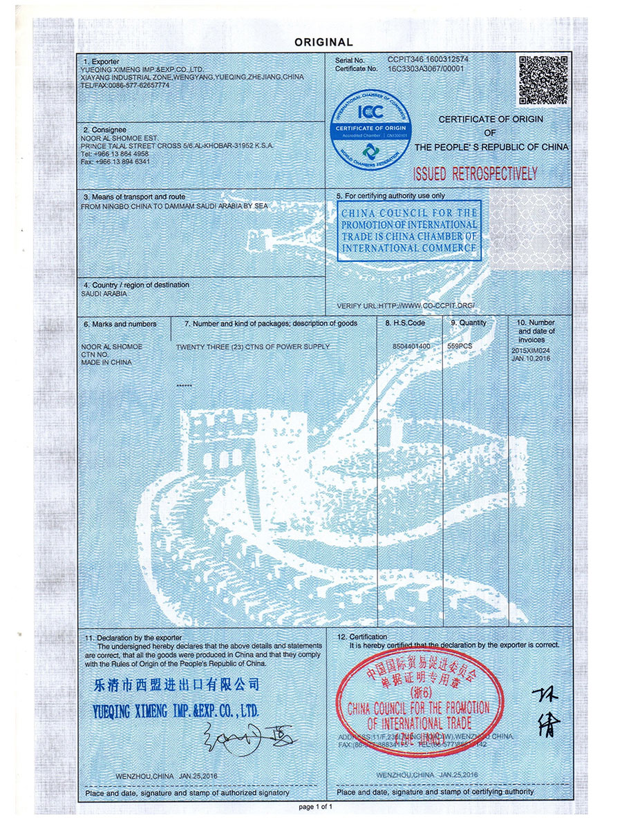 中國國際貿易促進委員會證書